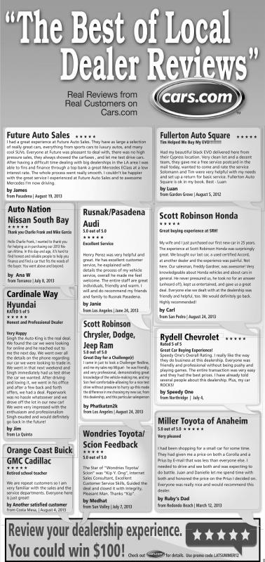 Had my beautiful black EVO delivered here from their Cypress location. Very clean lot and a decent team, they gave me a free service postcard in the mail today, wanted to come and rate the service Solomann and Tim were very helpful with my needs and set up a return for basic service. Fullerton Auto Square is ok in my book. Best - Luan