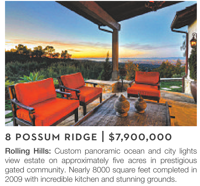 Rolling Hills: Custom panoramic ocean and city lights view estate on approximately five acres in prestigious gated community. Nearly 8000 square feet completed in 2009 with incredible kitchen and stunning grounds.