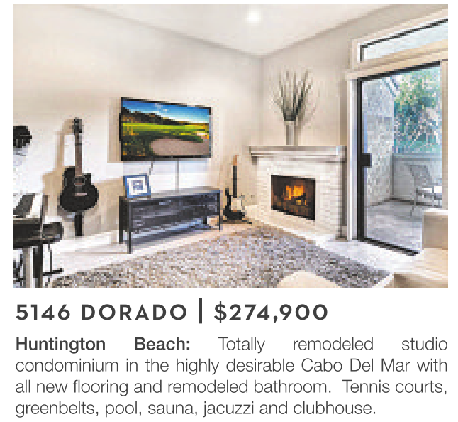 Huntington Beach: Totally remodeled studio condominium in the highly desirable Cabo Del Mar with all new flooring and remodeled bathroom. Tennis courts, greenbelts, pool, sauna, jacuzzi and clubhouse.