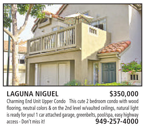 LAGUNA NIGUEL $350,000 Charming End Unit Upper Condo This cute 2bedroom condo with wood