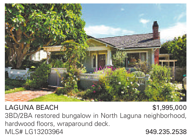 LAGUNA BEACH $1,995,000 3BD/2BA restored bungalow in North Laguna neighborhood, hardwood floors, wraparound deck. MLS# LG13203964 949.235.2538