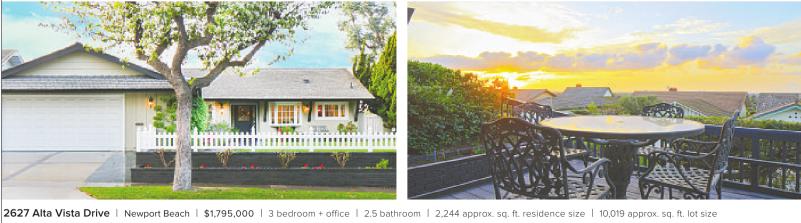 2627 Alta Vista Drive | Newport Beach | $1,795,000 | 3 bedroom + office | 2.5 bathroom | 2,244 approx. sq. ft. residence size | 10,019 approx. sq. ft. lot size