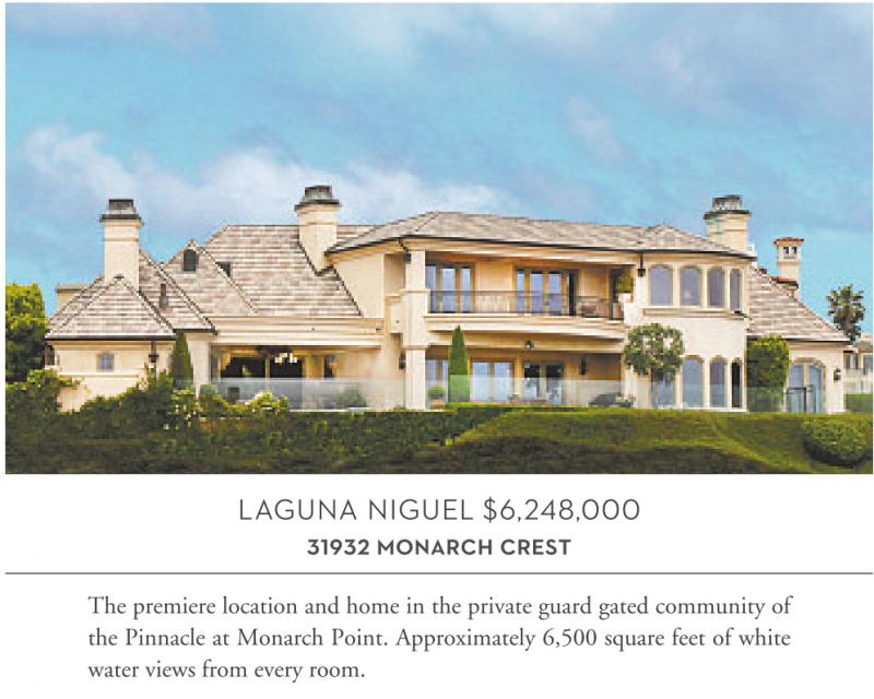 LAGUNA NIGUEL $6,248,000 31932 MONARCH CREST