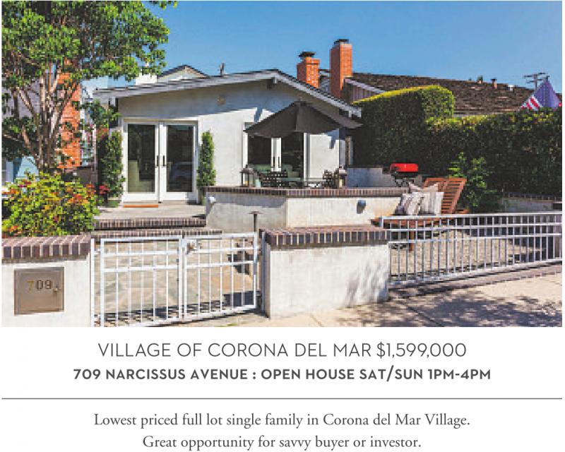 VILLAGE OF CORONA DEL MAR $1,599,000 709 NARCISSUS AVENUE : OPEN HOUSE SAT/SUN 1PM-4PM
