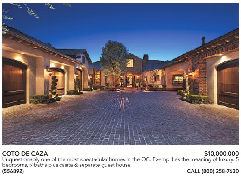 COTO DE CAZA $10,000,000 Unquestionably one of the most spectacular homes in the OC. Exemplifies the meaning of luxury. 5 bedrooms, 9baths plus casita &separateguest house. (556892) CALL (800)258-7630