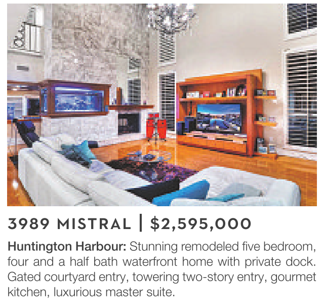 Huntington Harbour: Stunning remodeled five bedroom, four and a half bath waterfront home with private dock. Gated courtyard entry, towering two-story entry, gourmet kitchen, luxurious master suite.