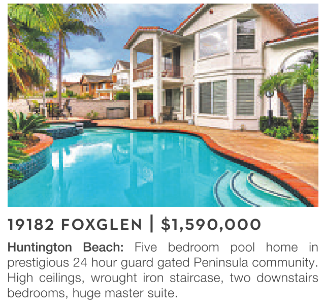 Huntington Beach: Five bedroom pool home in prestigious 24 hour guard gated Peninsula community. High ceilings, wrought iron staircase, two downstairs bedrooms, huge master suite.