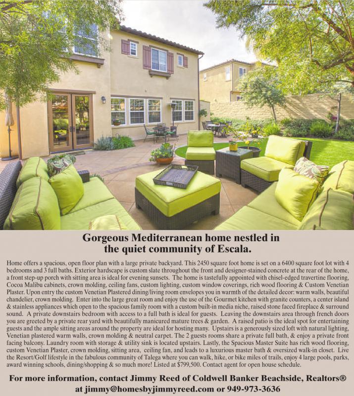 For more information, contact Jimmy Reed of Coldwell Banker Beachside, Realtors® at jimmy@homesbyjimmyreed.com or 949-973-3636