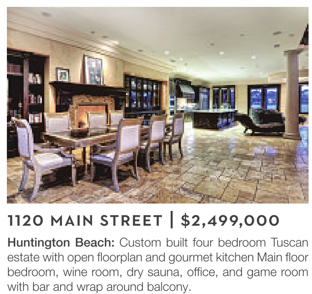 Huntington Beach: Custom built four bedroom Tuscan estate with open floorplan and gourmet kitchen Main floor bedroom, wine room, dry sauna, office, and game room with bar and wrap around balcony.