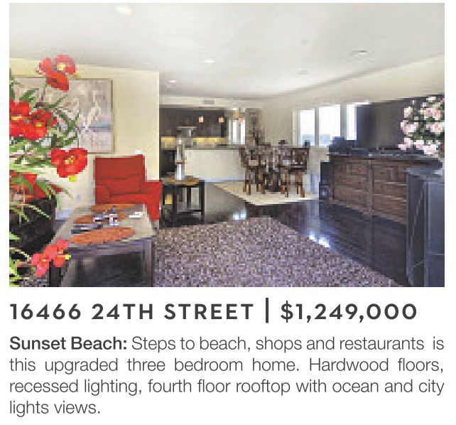 Sunset Beach: Steps to beach, shops and restaurants is this upgraded three bedroom home. Hardwood floors, recessed lighting, fourth floor rooftop with ocean and city lights views.