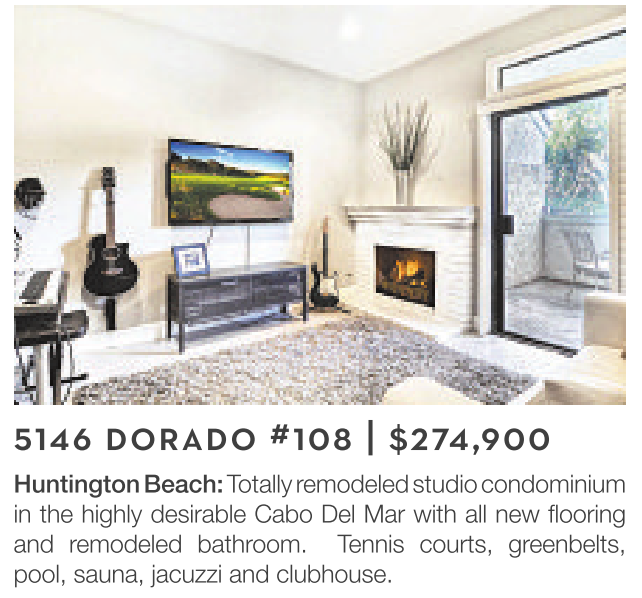 Huntington Beach: Totally remodeled studio condominium in the highly desirable Cabo Del Mar with all new flooring and remodeled bathroom. Tennis courts, greenbelts, pool, sauna, jacuzzi and clubhouse.