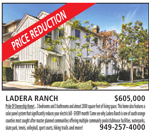 LADERA RANCH $605,000 PrideOfOwnership Home!... 3bedroomsand 3bathrooms and almost 2000 square feet of livingspace.This homealso features a