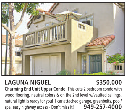 LAGUNA NIGUEL $350,000 Charming EndUnit Upper Condo. This cute 2bedroomcondowith
