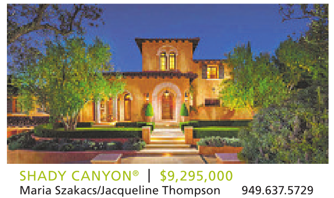 SHADY CANYON ® | $9,295,000 Maria Szakacs/Jacqueline Thompson 949.637.5729