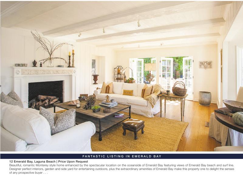 Beautiful, romantic Monterey style home enhanced by the spectacular location on the oceanside of Emerald Bay featuring views of Emerald Bay beach and surf line.