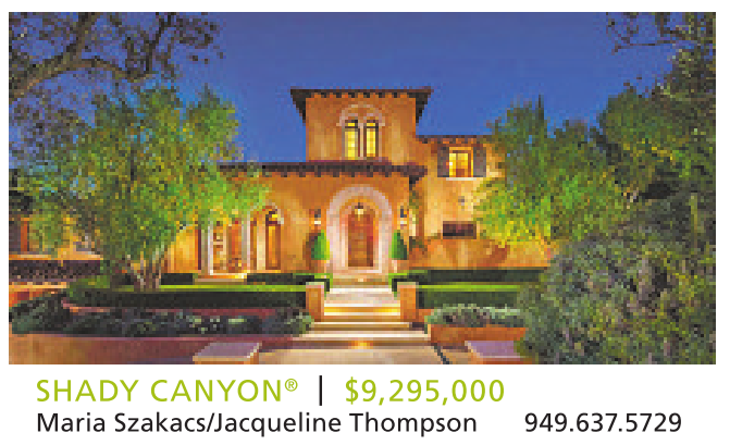 SHADY CANYON ® | $9,295,000 Maria Szakacs/Jacqueline Thompson 949.637.5729