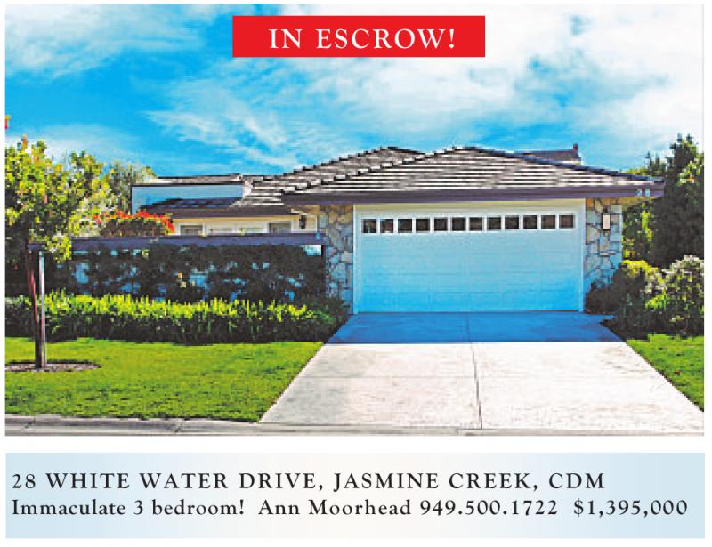 28 WHITE WATER DRIVE, JASMINE CREEK, CDM Immaculate 3 bedroom! Ann Moorhead 949.500.1722 $1,395,000