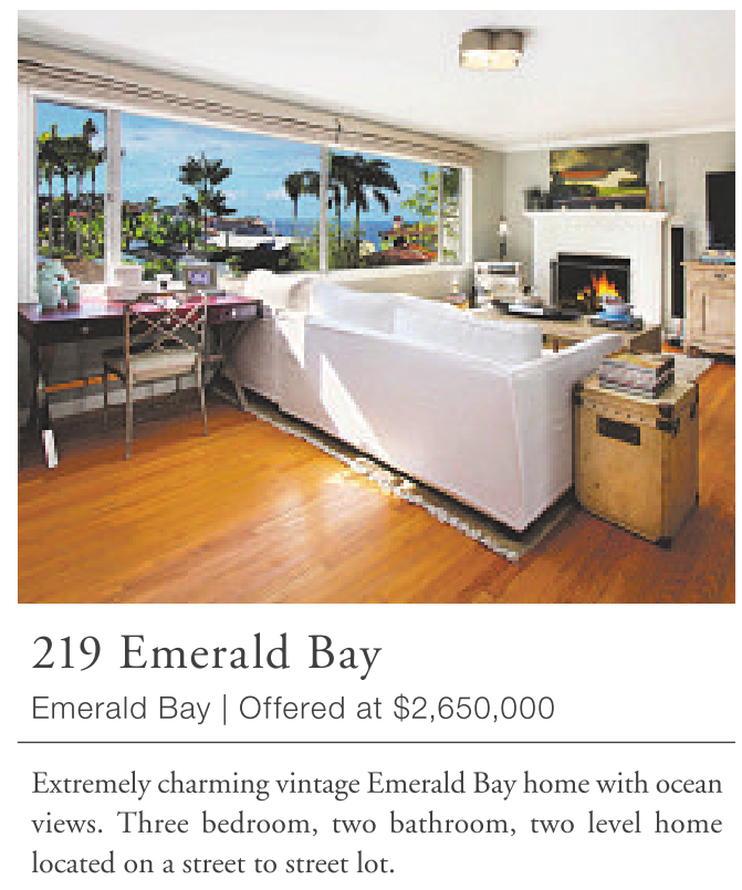 Extremely charming vintage Emerald Bay home with ocean views. Three bedroom, two bathroom, two level home located on a street to street lot.