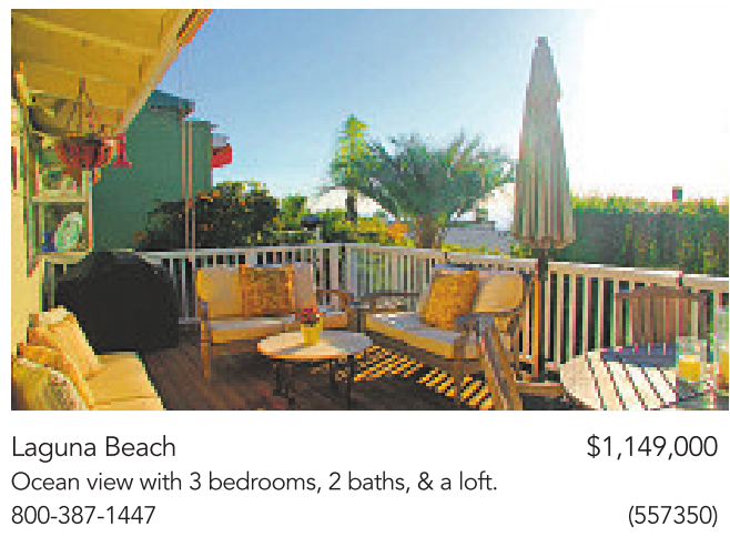 Laguna Beach $1,149,000 Ocean view with 3bedrooms, 2baths, &aloft. 800-387-1447 (557350)