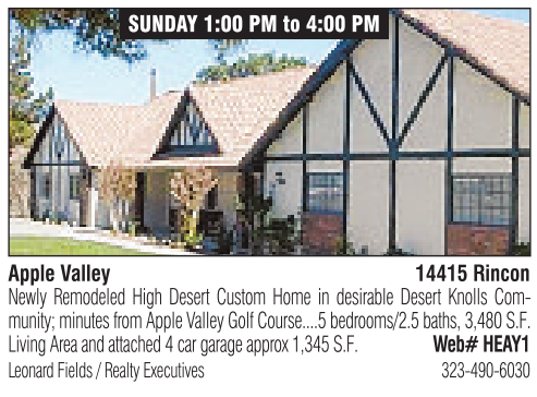 Newly Remodeled High Desert Custom Home in desirable Desert Knolls Community; minutes from Apple Valley Golf Course....5 bedrooms/2.5 baths, 3,480 S.F. Living Area and attached 4car garage approx 1,345 S.F. Web# HEAY1