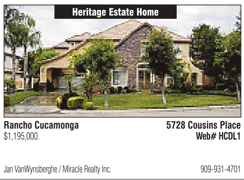 Jan VanWynsberghe /Miracle Realty Inc. 909-931-4701