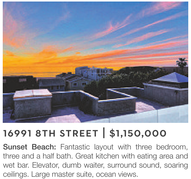 Sunset Beach: Fantastic layout with three bedroom, three and a half bath. Great kitchen with eating area and wet bar. Elevator, dumb waiter, surround sound, soaring ceilings. Large master suite, ocean views.
