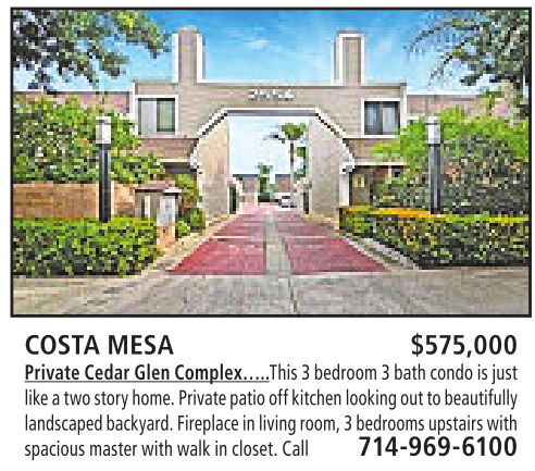 COSTA MESA $575,000 PrivateCedar Glen Complex…..This 3bedroom3bathcondoisjust