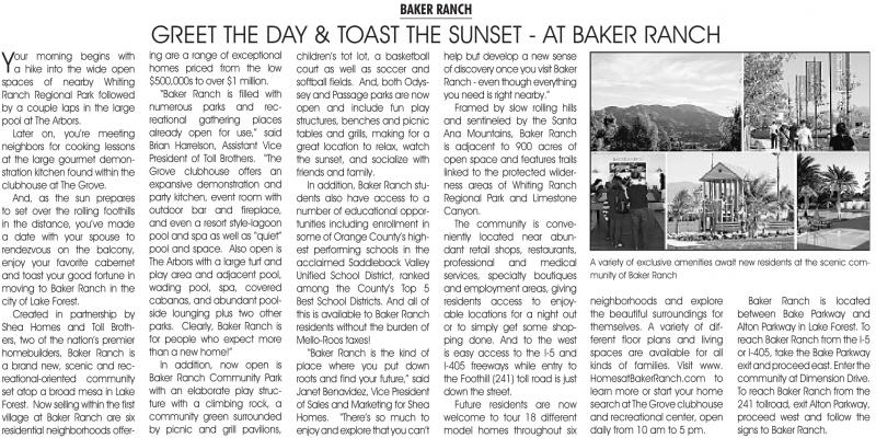 help but develop a new sense of discovery once you visit Baker Ranch -even though everything you need is right nearby.”