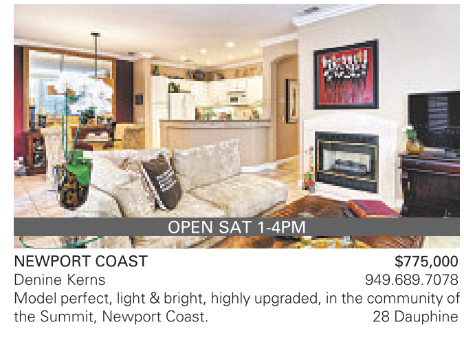 NEWPORT COAST $775,000 Denine Kerns 949.689.7078 Model perfect, light &bright, highly upgraded, in the community of the Summit, Newport Coast. 28 Dauphine