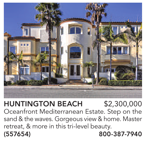 HUNTINGTON BEACH $2,300,000 Oceanfront Mediterranean Estate. Step on the sand &the waves. Gorgeousview &home. Master retreat,&moreinthistri-level beauty. (557654) 800-387-7940