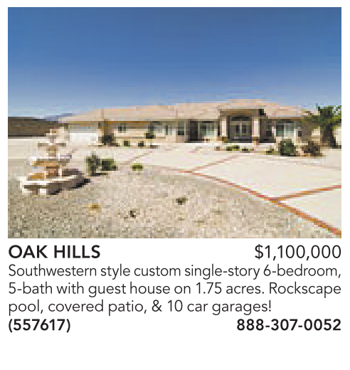 OAK HILLS $1,100,000 Southwestern stylecustomsingle-story 6-bedroom, 5-bath with guesthouse on 1.75 acres. Rockscape pool,coveredpatio,&10car garages! (557617) 888-307-0052