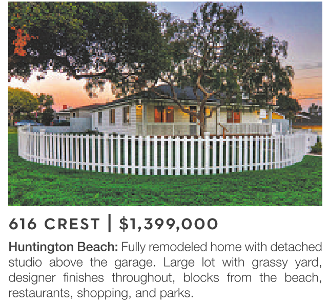 Huntington Beach: Fully remodeled home with detached studio above the garage. Large lot with grassy yard, designer finishes throughout, blocks from the beach, restaurants, shopping, and parks.