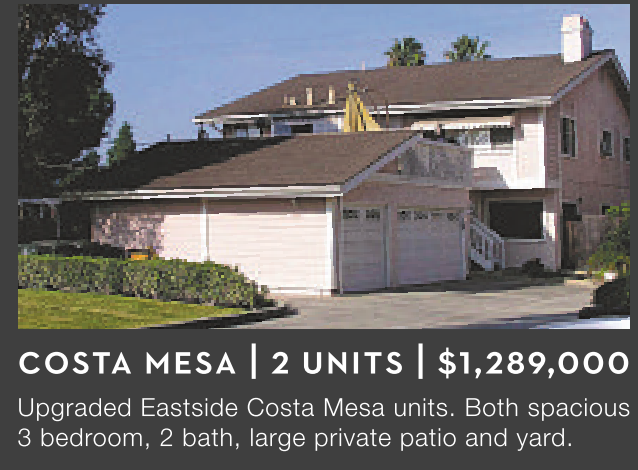 Upgraded Eastside Costa Mesa units. Both spacious 3 bedroom, 2 bath, large private patio and yard.