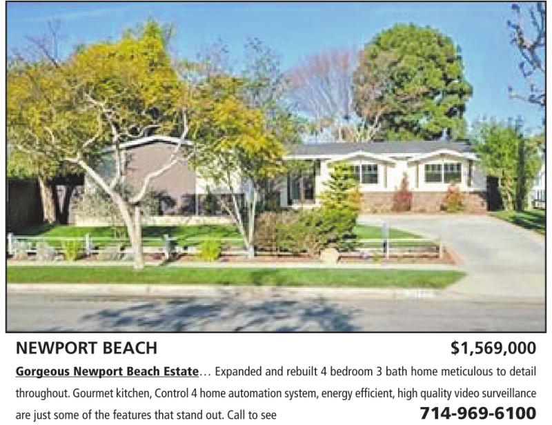 NEWPORT BEACH $1,569,000 Gorgeous Newport Beach Estate… Expanded and rebuilt 4 bedroom 3 bath home meticulous to detail throughout. Gourmet kitchen, Control 4home automation system, energy efficient, high quality video surveillance are just some of the features that stand out. Call to see 714-969-6100