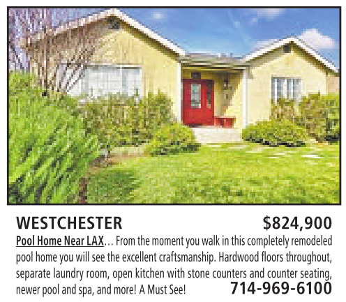 WESTCHESTER $824,900 Pool HomeNear LAX…From themomentyou walkinthis completelyremodeled poolhome youwill seethe excellent craftsmanship.Hardwood floors throughout, separate laundry room, open kitchen with stone counters and counter seating, newer pooland spa, andmore!AMust See! 714-969-6100