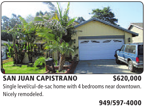 SAN JUAN CAPISTRANO $620,000 Single level/cul-de-sachome with 4bedroomsnear downtown. Nicelyremodeled.