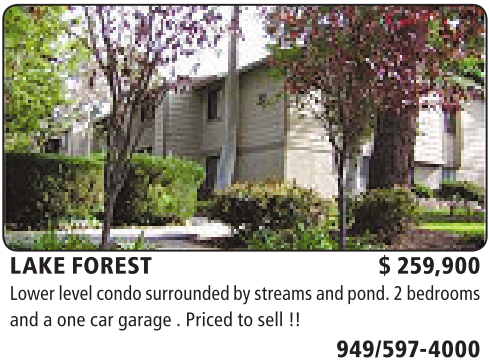 LAKE FOREST $ 259,900 Lowerlevel condosurrounded by streams andpond.2bedrooms andaone cargarage.Pricedtosell!!