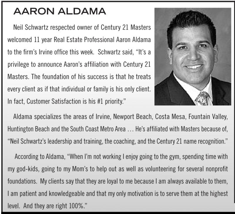 Aldama specializes the areas of Irvine, Newport Beach, Costa Mesa, Fountain Valley,