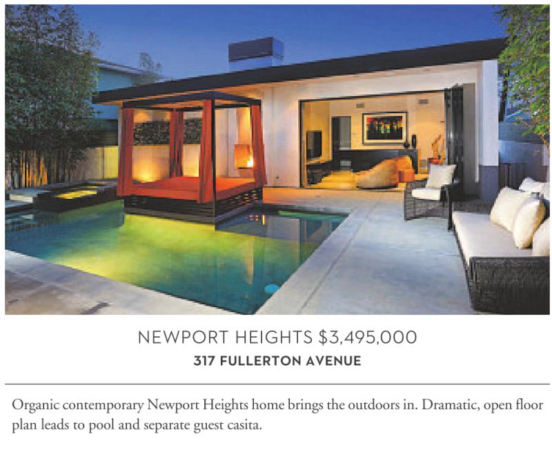 Organic contemporary Newport Heights home brings the outdoors in. Dramatic, open floor plan leads to pool and separate guest casita.