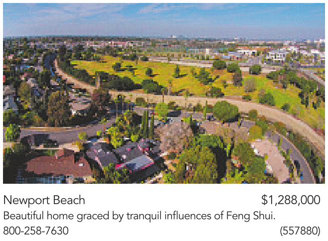 Newport Beach $1,288,000 Beautiful home graced by tranquil influences of Feng Shui. 800-258-7630 (557880)