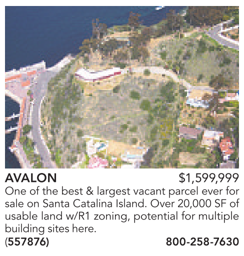 AVALON $1,599,999 One of the best & largest vacant parcel ever for sale on Santa Catalina Island. Over 20,000 SF of usable land w/R1 zoning, potential for multiple buildingsites here. (557876) 800-258-7630