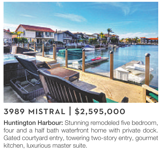 Huntington Harbour: Stunning remodeled five bedroom, four and a half bath waterfront home with private dock. Gated courtyard entry, towering two-story entry, gourmet kitchen, luxurious master suite.