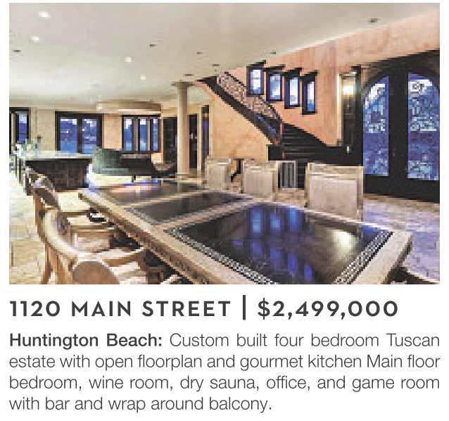 Huntington Beach: Custom built four bedroom Tuscan estate with open floorplan and gourmet kitchen Main floor bedroom, wine room, dry sauna, office, and game room with bar and wrap around balcony.