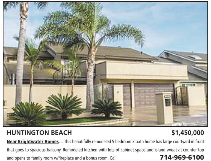 NearBrightwater Homes…This beautifully remodeled 5bedroom 3bath home has large courtyard in front that goes to spacious balcony. Remodeled kitchen with lots of cabinet space and island w/eat at counter top and opens to family roomw/fireplace and abonus room. Call 714-969-6100