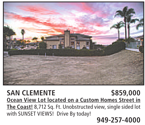 SAN CLEMENTE $859,000 Ocean View Lot located on a Custom Homes Street in