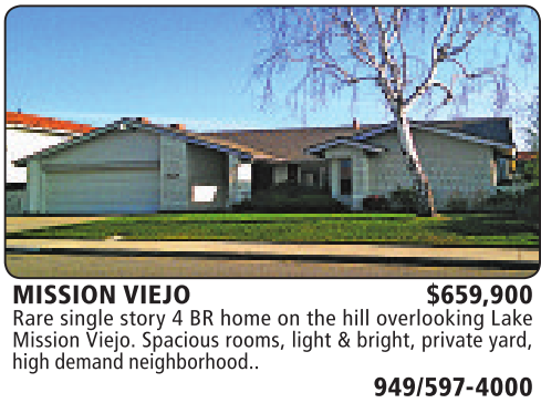 MISSION VIEJO $659,900 Rare single story 4 BR home on the hill overlooking Lake