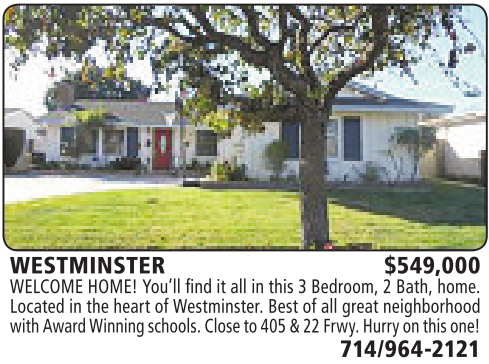 WESTMINSTER $549,000 WELCOME HOME! You’ll find it all inthis 3Bedroom, 2Bath, home.