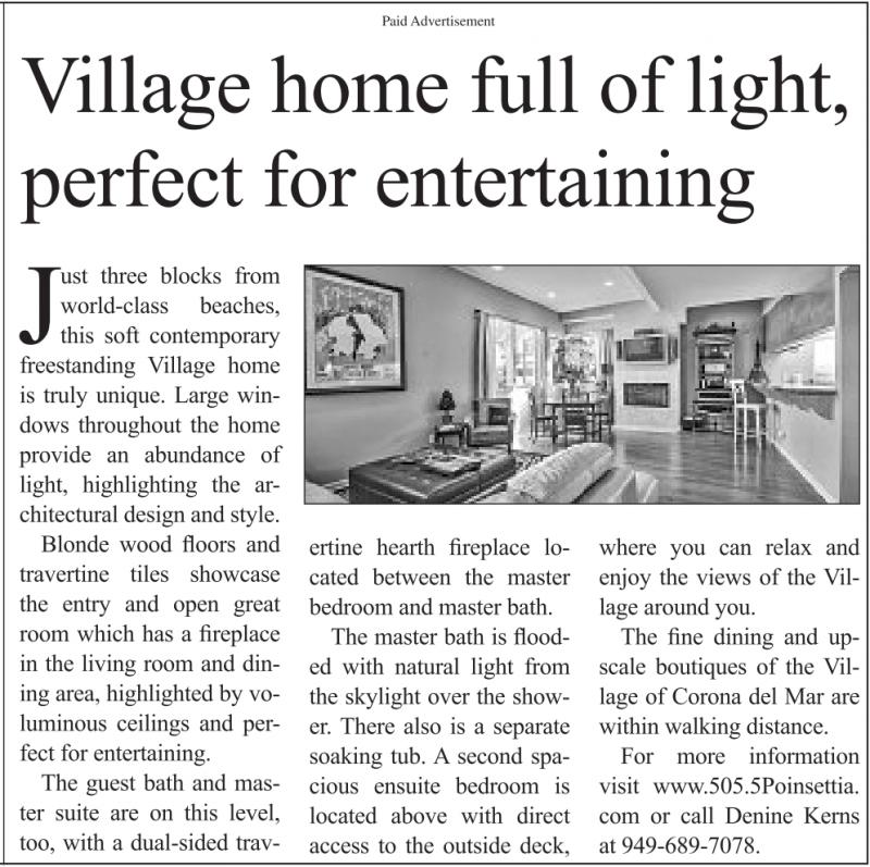 The fine dining and upscale boutiques of the Village of Corona del Mar are within walking distance.