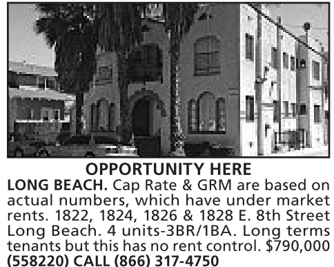 OPPORTUNITY HERE LONG BEACH. Cap Rate & GRM are based on