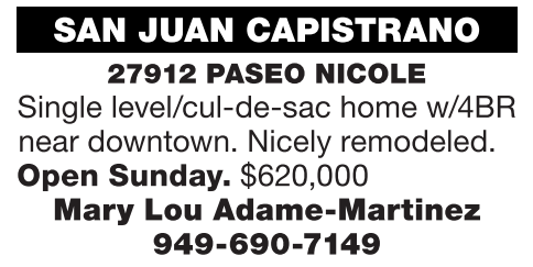Open Sunday. $620,000 Mary Lou Adame-Martinez 949-690-7149
